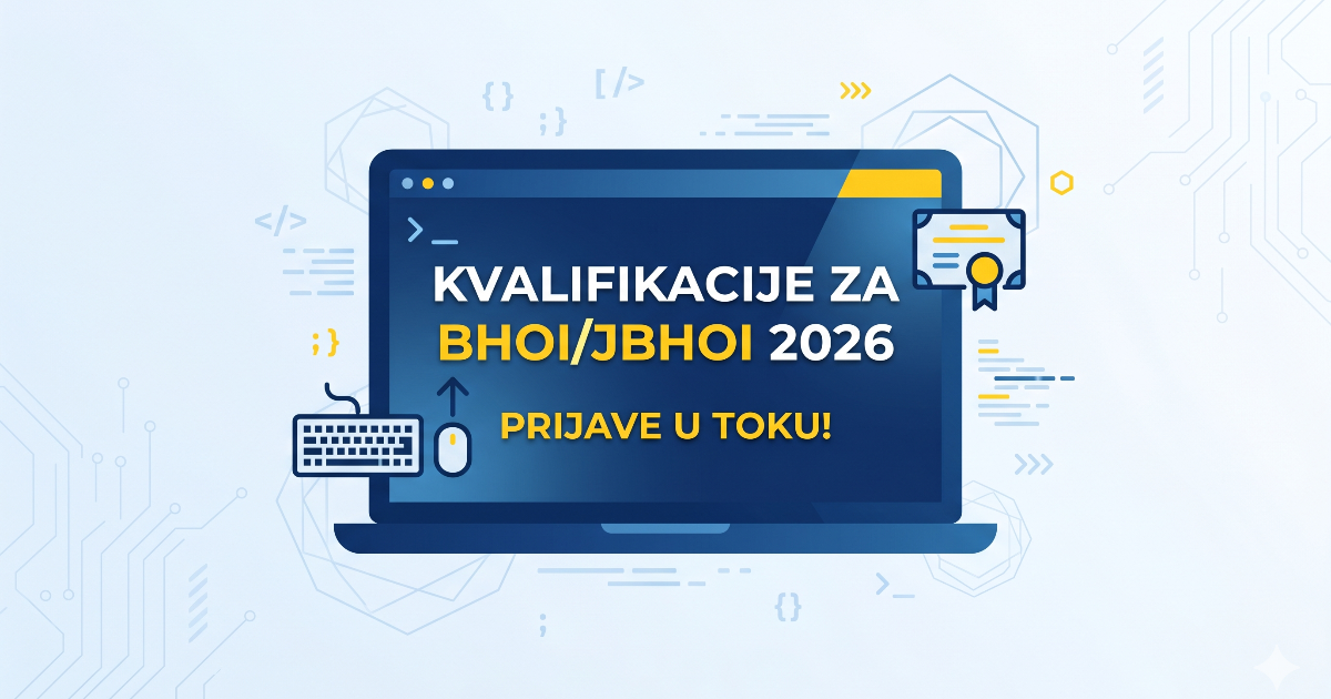 Podsjećamo sve učenike osnovnih i srednjih škola da se bliži datum održavanja Kvalifikacija za BHOI/JBHOI 2026. Takmičenje je planirano za nedjelju, 10. maja 2026. godine, a rok za prijave je značajno prije toga.